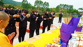 | 新年开工仪式 佛教供品 | 集团总裁燃烧祭品 |